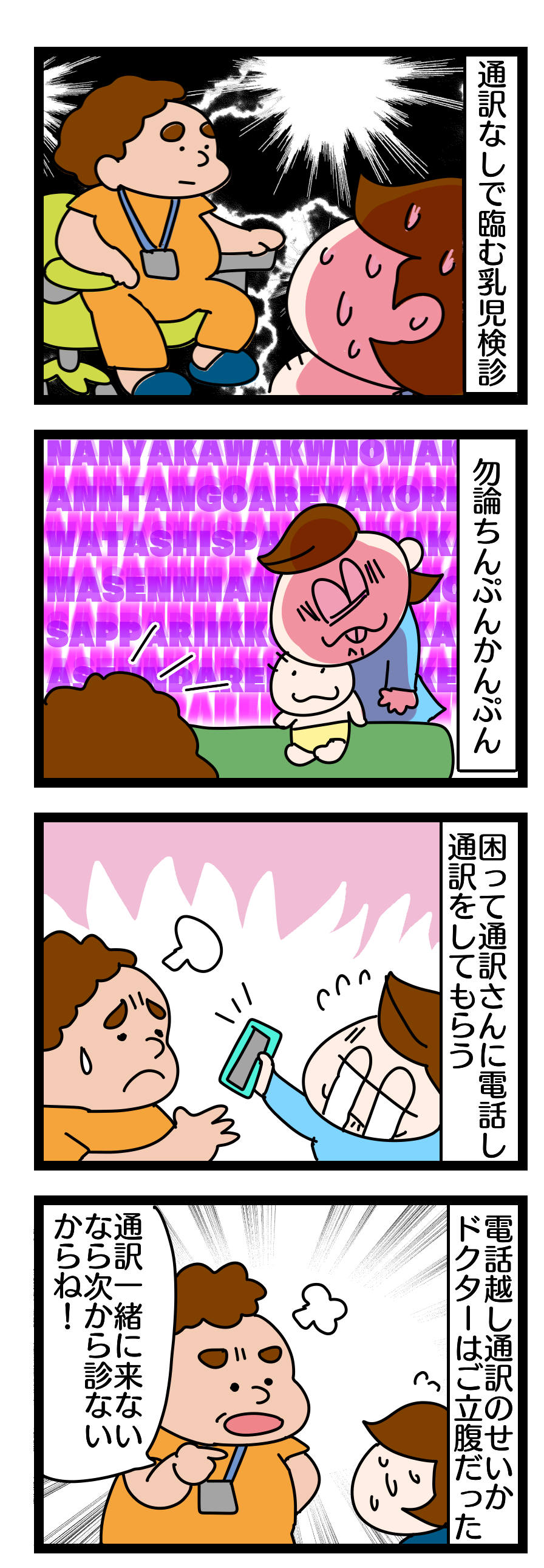 アルゼンチン生活1年目 > アルゼンチンで病院・乳児検診 2020年04月16日 第136話 アルゼンチンで乳児検診~通訳なしで臨んだ結果続き 乳児検診に通訳が急用で同行できずあぶらさん一人で医師と話さなければならなくなってしまったのですが…電話越しに通訳を介しての診察が、ものすごく面倒だったのかお医者さんはご立腹。次回からは通訳なしでは診ない!とはっきり言われてしまいました。乳児検診のお話はもうちょっと続きます。次回につづきます。前回までのお話。応援おねがいします!バナーをクリックすると当ブログにランキングの1票が入ります♪(いつもありがとうございます!)にほんブログ村 スポンサードリンク 「アルゼンチン生活1年目」カテゴリの最新記事 前の記事: 第135話 アルゼンチンでの乳児検診~通訳なしで臨んだ結果 次の記事: 第137話 アルゼンチンで乳児検診~月1で受けられるはずの検診が受けられない コメント コメントフォーム 名前 コメント 記事の評価 リセット リセット 顔 星 情報を記憶 コメントを投稿する